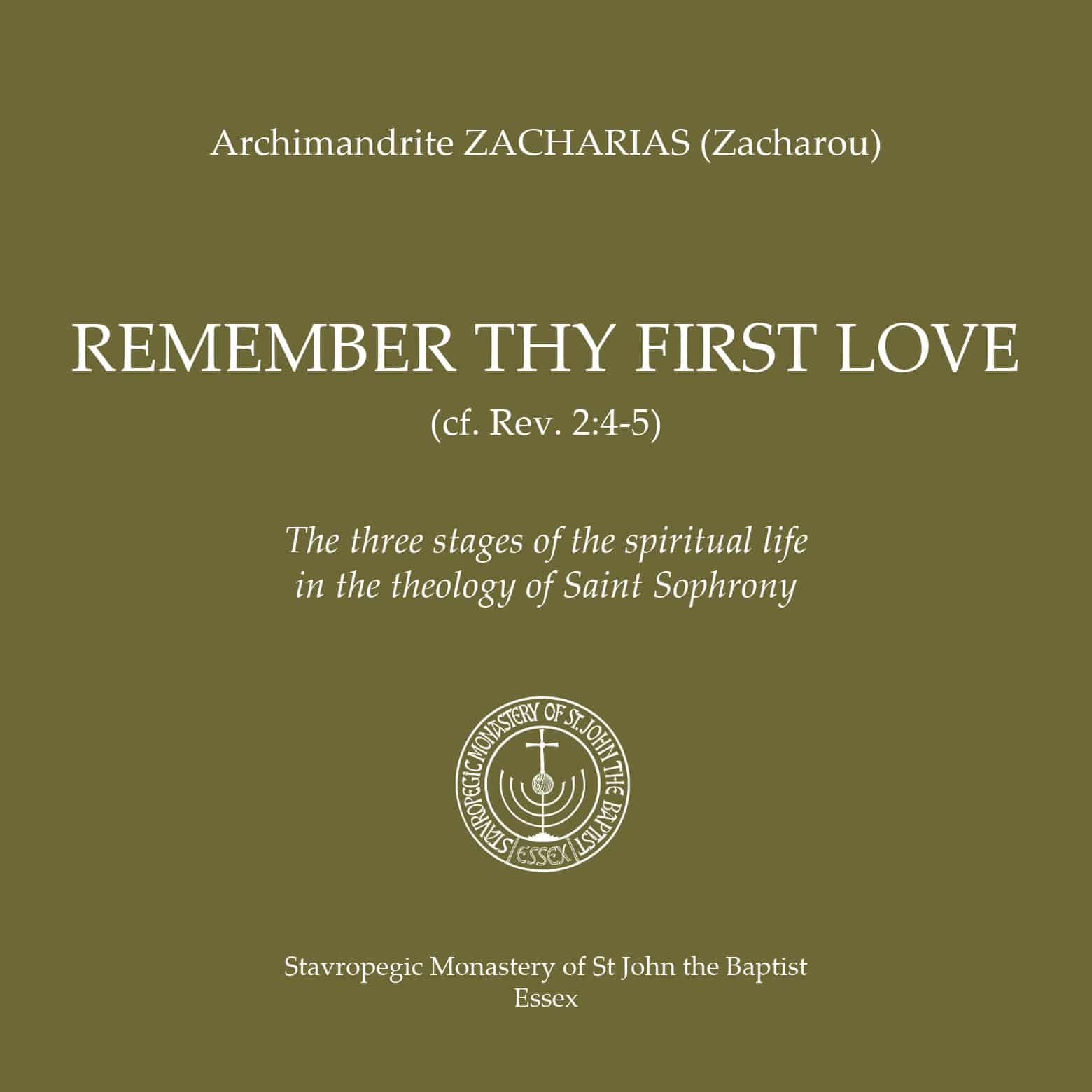 Remember Thy First Love is a graphic description of the three stages in Christian life according to Saint Sophrony the Athonite (1896-1993), disciple of St Silouan the Athonite (1866-1938) and founder of the Patriarchal and Stavropegic Monastery of St John the Baptist in Essex, England.