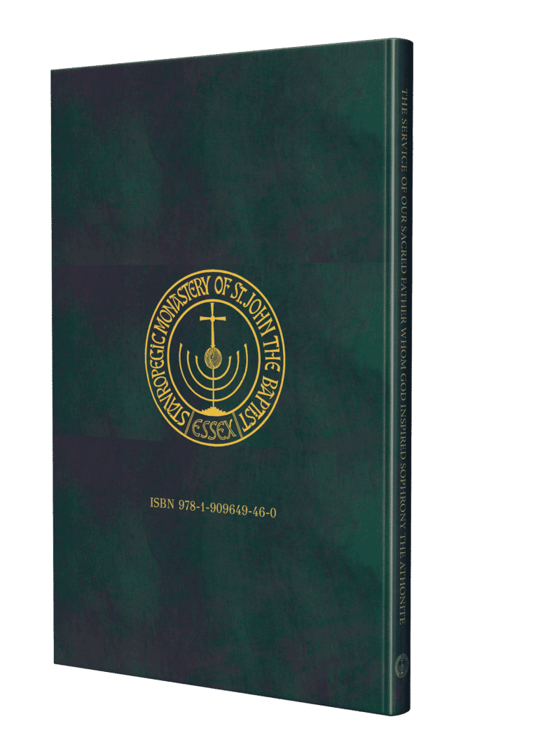 Publishing the first edition of the Service of Saint Sophrony with the approval and blessing of His All-Holiness Ecumenical Patriarch Bartholomew, we hope that it will help us draw near to our saints, so that we may be edified by their word and so that their intercession may continue to minister that which Elder Sophrony, wise in God, considered the greatest miracle in all the created world: the union of the heart of man with the eternal Spirit of God.
